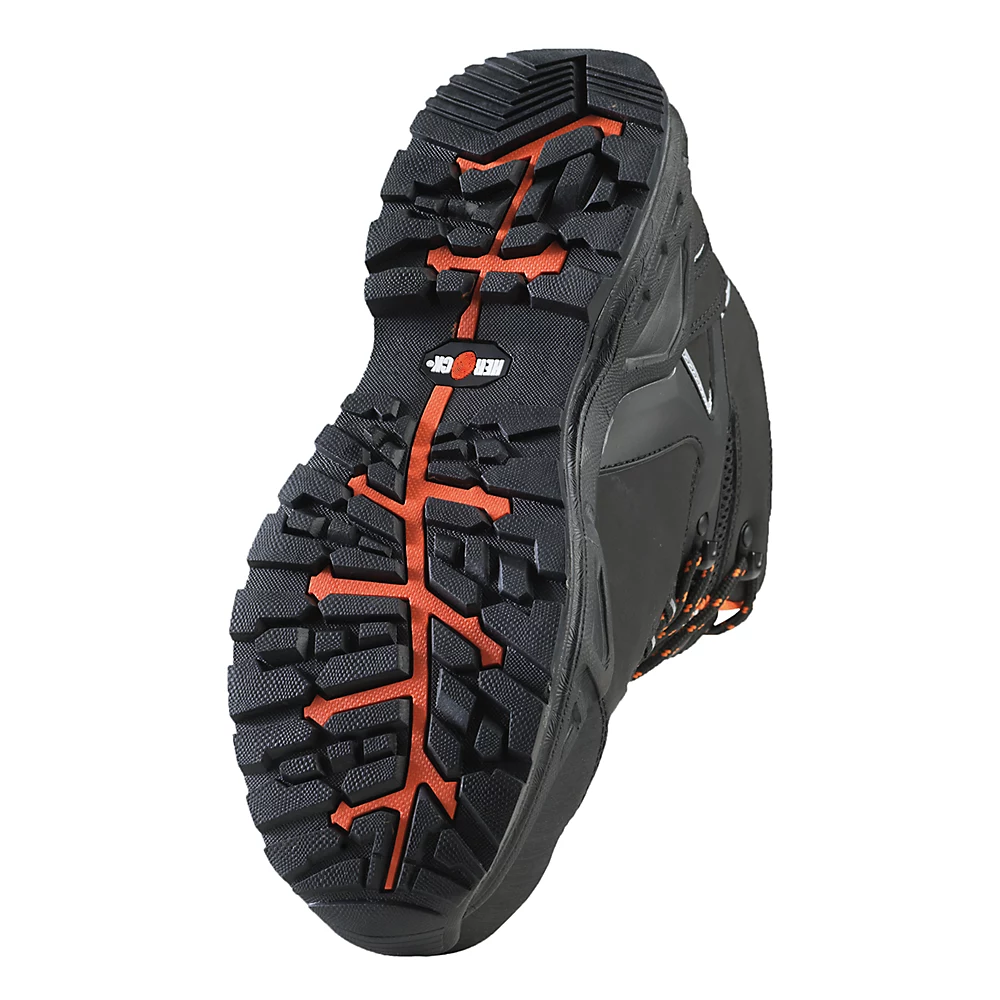 Chaussures de sécurité montantes en cuir confortables avec embout composite, semelle intermédiaire antiperforation non métallique et semelle en caoutchouc résistant EVA. Col et languette rembourrés.
