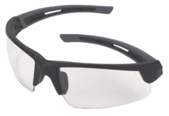 Lunettes de protection légères et ergonomiques à semi-monture de style sportif. Les tempes en caoutchouc à double injection et le nez en caoutchouc souple offrent un confort supplémentaire. Verres transparents pour une vision parfaite à l’intérieur comme à l’extérieur.