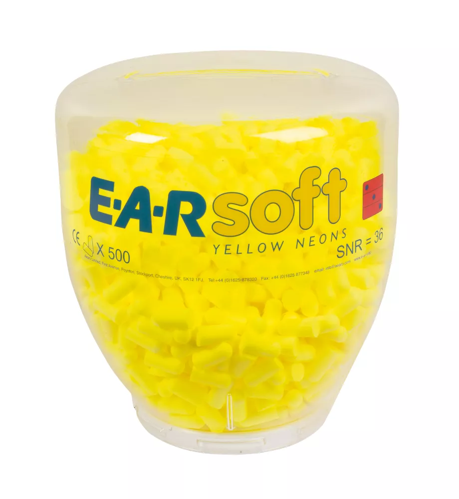 Le réservoir de recharge de bouchons d’oreille Earsoft Neon distribue 500 paires de bouchons d’oreille Earsoft. Les bouchons se positionnent par expansion.
