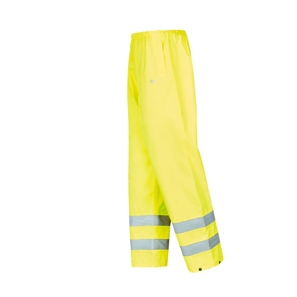 Surpantalon imperméable, léger et haute visibilité avec bande réfléchissante. Taille élastique, ourlet à boutons-pression réglable et 2 poches faciles d’accès (permettant d’accéder au pantalon). 190g/m².