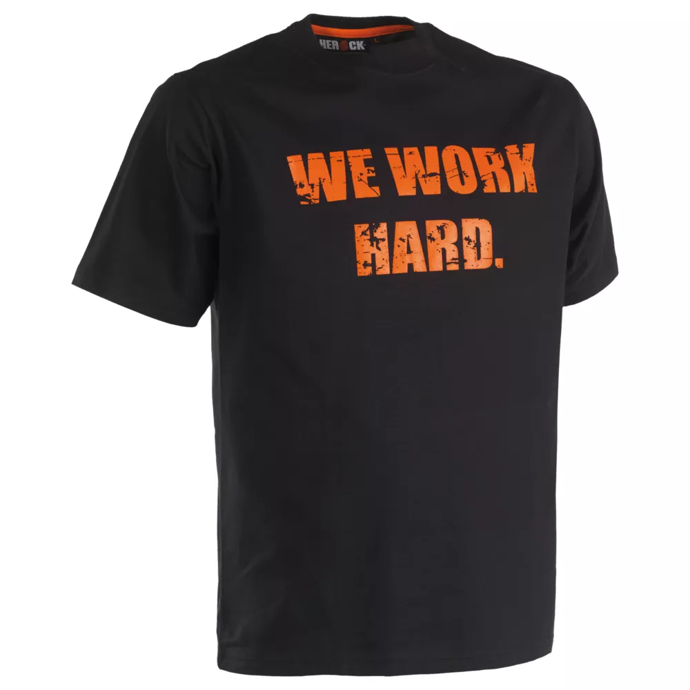 T-shirt à manches courtes avec imprimé « We work hard ». Avec col tricoté côtelé et boucle à l’arrière du T-shirt, ce qui permet de le suspendre à un crochet.